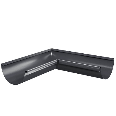 Угол желоба водостока внутренний 90 градусов d125мм RAL 7024 Серый Графит металлический - используется для надежного сопряжения двух желобов между собой на внутренних углах 90 градусов карниза кровли. Угол желоба изготовлен без сварных сопряжений, методом прессования (глубокая вытяжка), что придает ему дополнительную коррозийную и механическую стойкость.