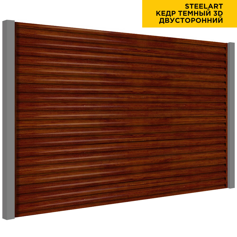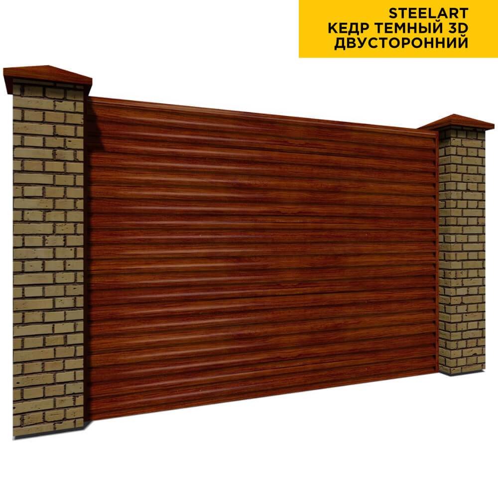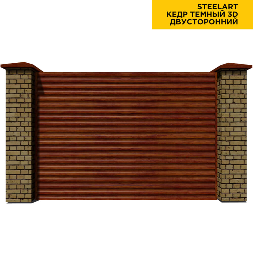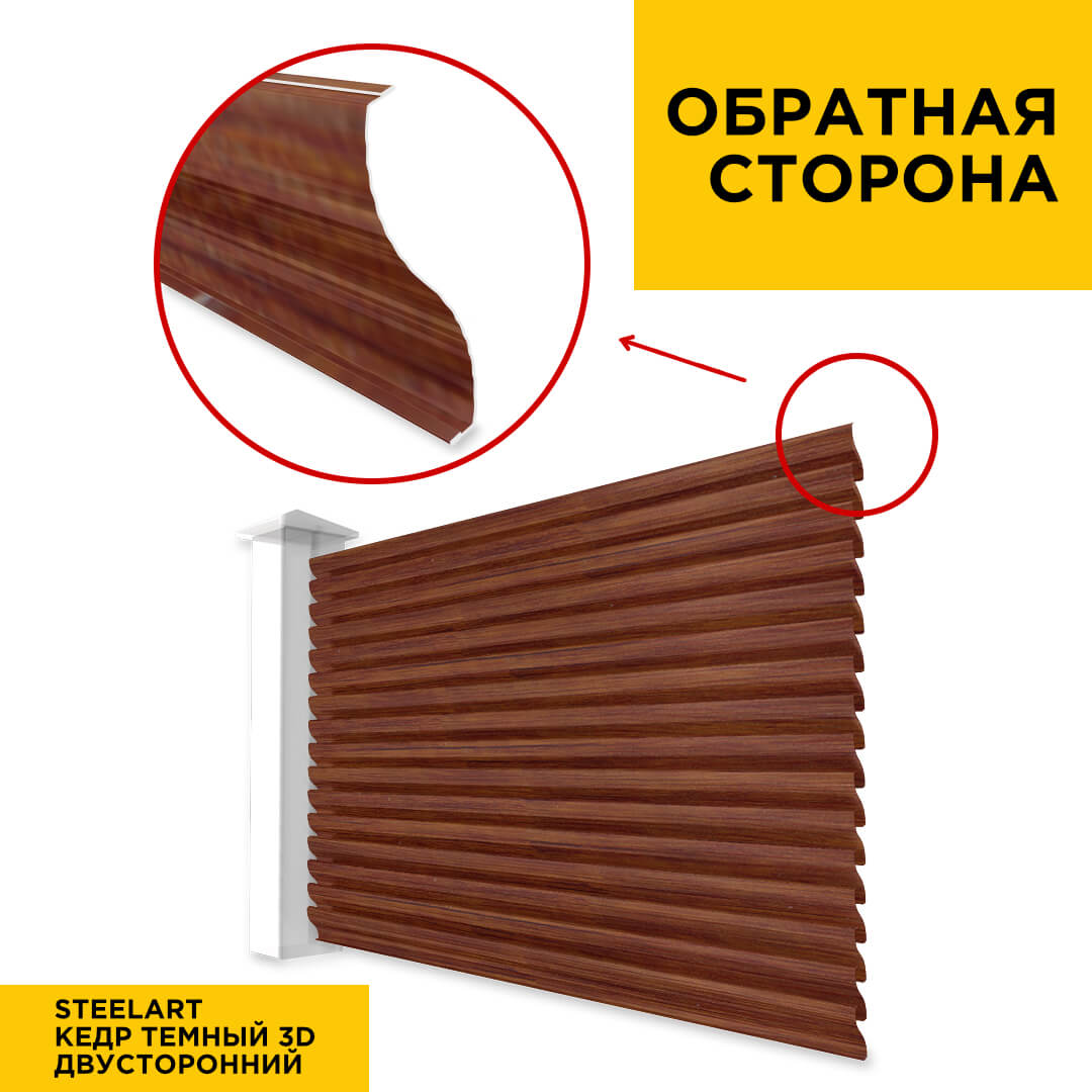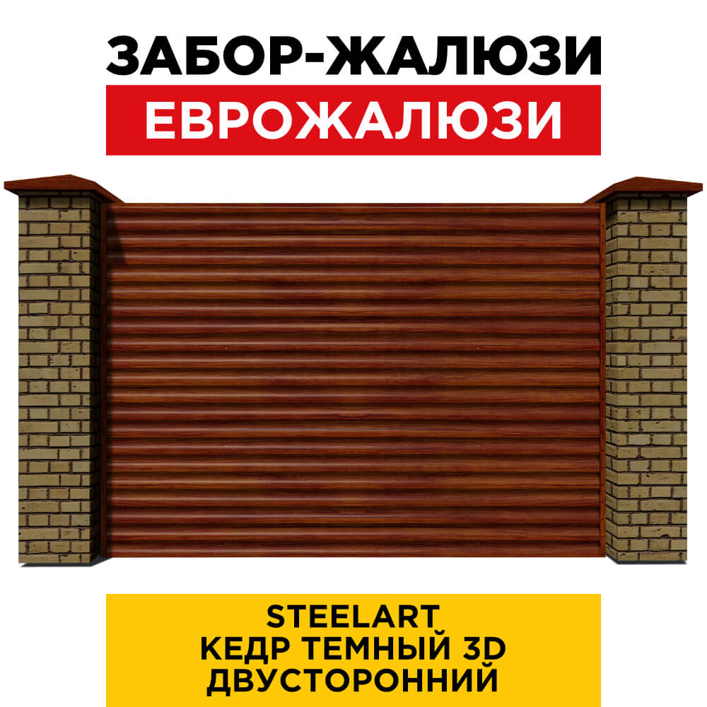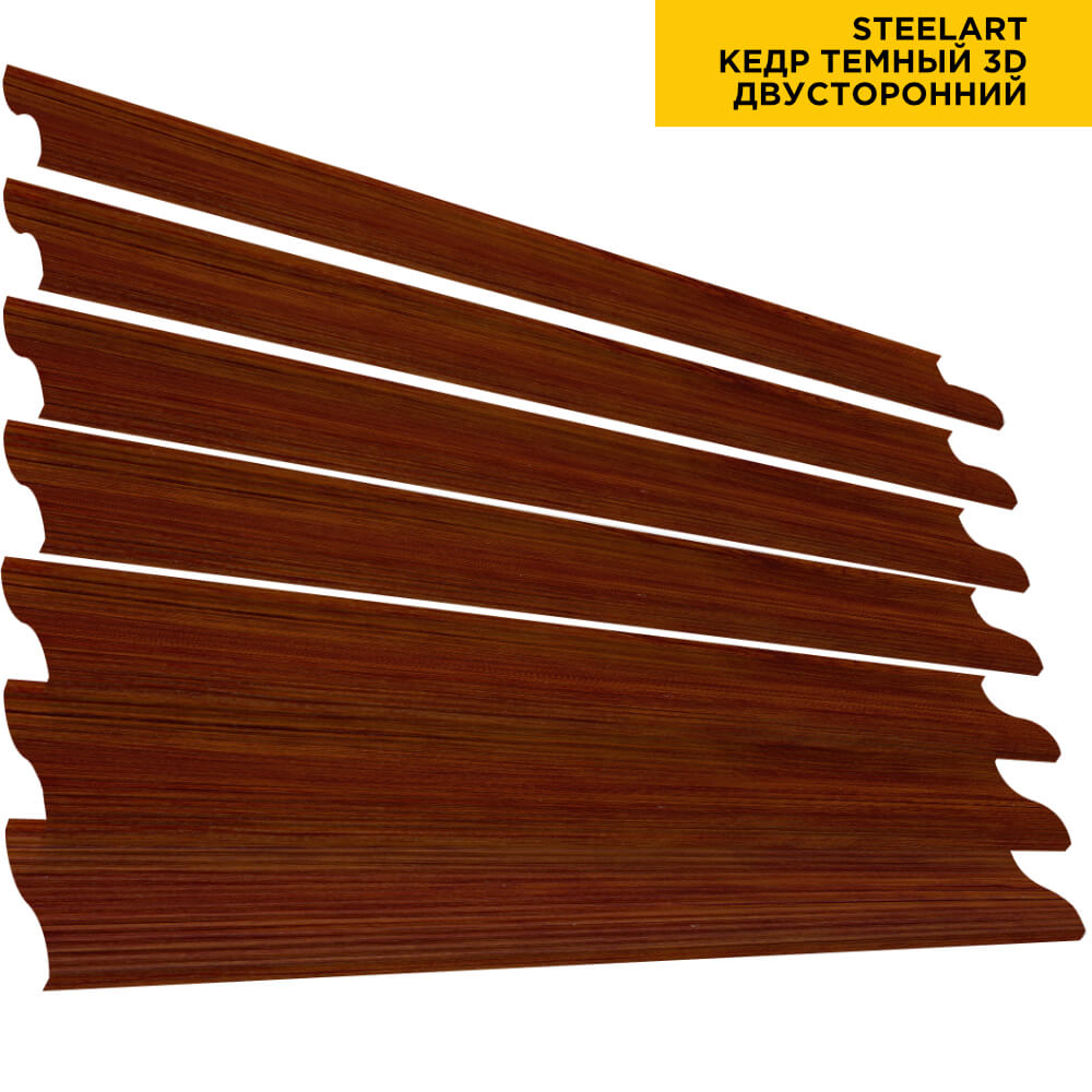 Ламель Еврожалюзи металлическая S-образная, цвет под дерево Кедр Темный 3D SteelArt Россия двухстороннее покрытие, длина любая кратно 1см под заказ - для забора-жалюзи, беседки, перголы в Шымкенте