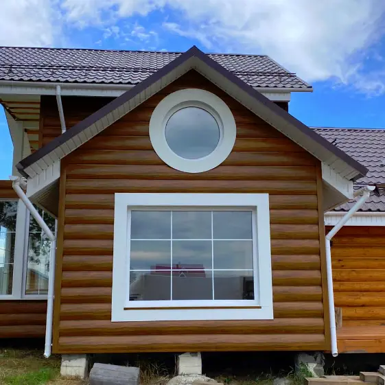 Представьте себе дом, который с первого взгляда вызывает восхищение: натуральная красота дерева и надежность металла в одном решении. Фасад из металлического сайдинга «Бревно Рубленое 4D» в оттенке Орех с премиальным покрытием Printech (Корея) создаёт эффект прочности, уюта и респектабельности. Такой фасад не только выглядит дорого и естественно, но и защищает дом от любых капризов погоды, сохраняя привлекательность на долгие годы. Это идеальное сочетание стиля, качества и долговечности, которое подчеркивает индивидуальность владельца.
