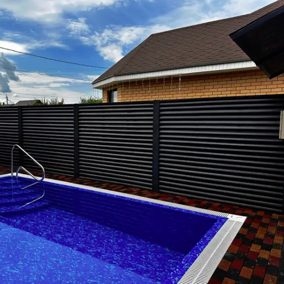 Забор типа жалюзи из ламелей Еврожалюзи в покрытии Черное Дерево 3D Принтек — стильное и современное решение, которое уверенно задаёт тренды в загородном и городском благоустройстве на 2025–2026 годы. Двусторонняя конструкция не только обеспечивает привлекательный вид с обеих сторон участка, но и сочетает в себе функциональность, долговечность и приватность. Эффектная фактура «под дерево» в глубоком тёмном исполнении подчёркивает статус владельцев и гармонично вписывается как в классическую, так и в современную архитектуру. Такой забор — это не просто ограждение, а часть дизайнерской концепции, подчёркивающей индивидуальность пространства.